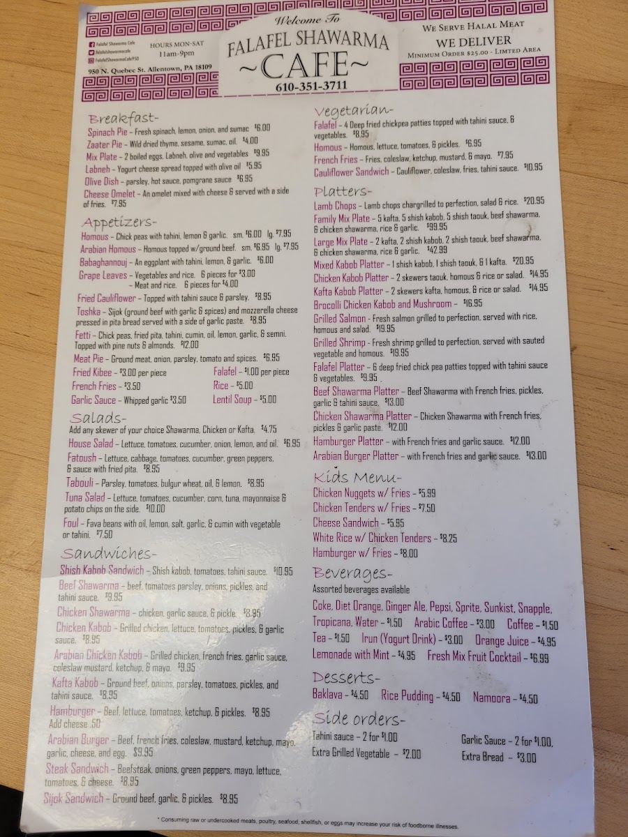Welcome to Falafel Shawarma Cafe, a culinary gem nestled in Allentown, PA. Our menu is a celebration of authentic Middle Eastern flavors, specializing in mouthwatering shawarma and kabob dishes. Each bite transports you to a vibrant world of spices and aromas, combining freshness with tradition.